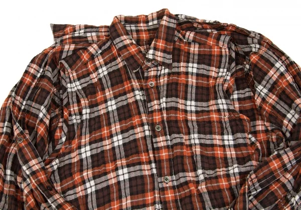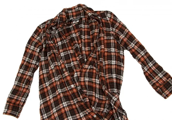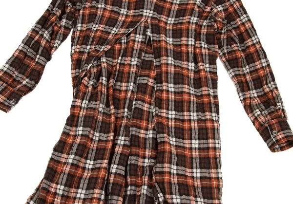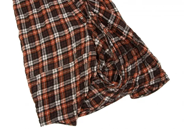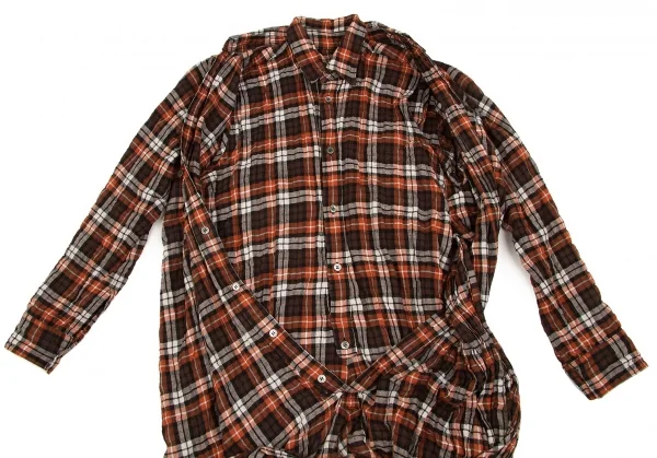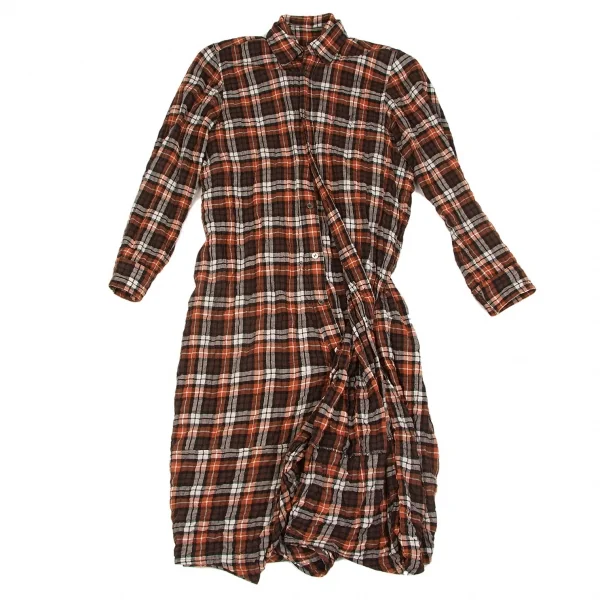 ジュンヤワタナベコムデギャルソンJUNYA WATANABE COMME des GARCONS レイヤード変形チェックシャツワンピース レンガ黒オフXS