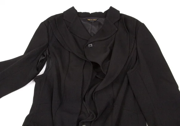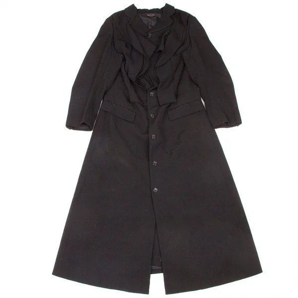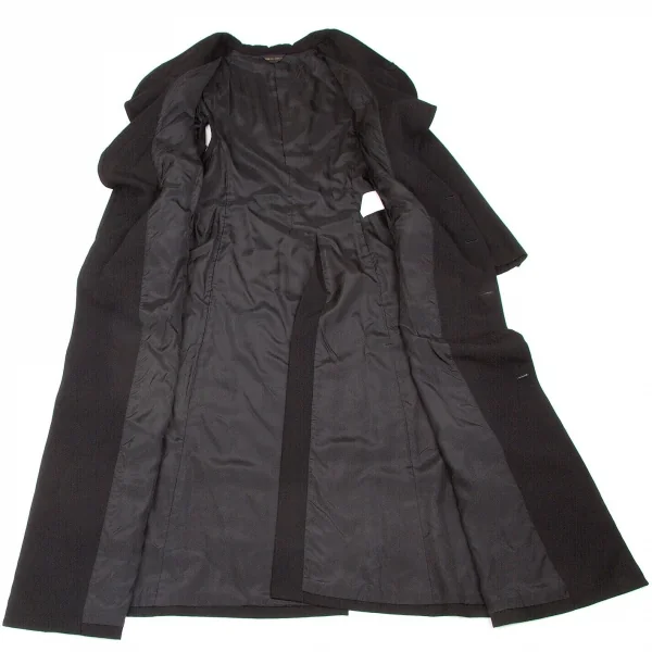 コムデギャルソンCOMME des GARCONS ウールギャバ切替デザインロングコート 黒M位
