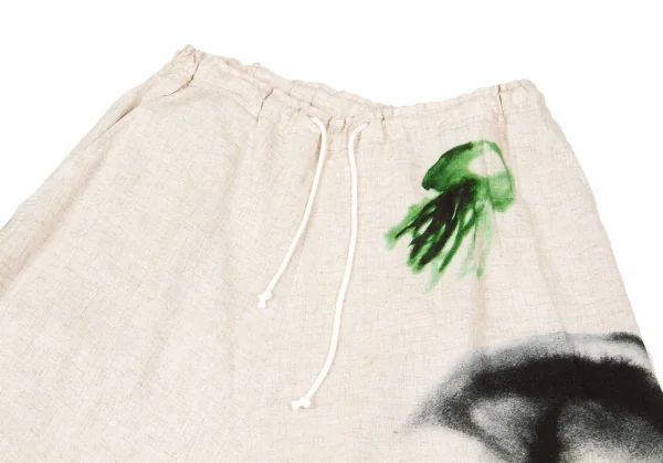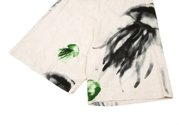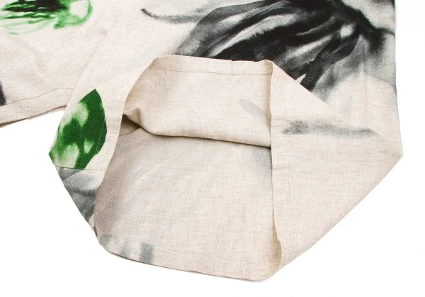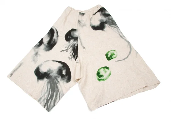 ワイズY's コットンリネンクラゲ柄染めアシンメトリーワイドパンツ 生成り緑グレー他2