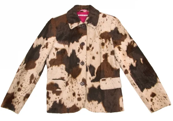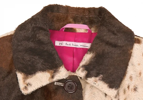 【SALE】ポールスミス ウーマンPaul Smith women 起毛ホルスタイン柄ステンカラージャケット ベージュ茶ピンク40