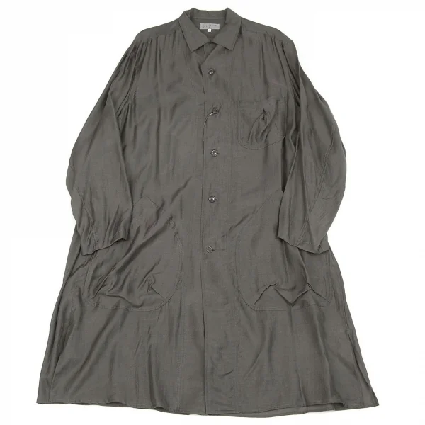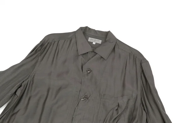 ヨウジヤマモトプールオムYohji Yamamoto POUR HOMME キュプラロングシャツ カーキグレー2