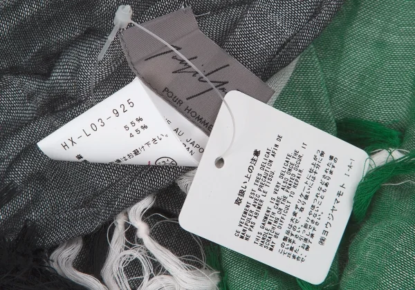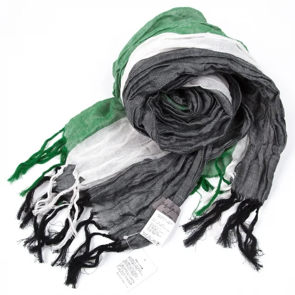 新品!ヨウジヤマモトプールオムYohji Yamamoto POUR HOMME リネンコットンストライプストール 白緑グレー