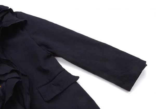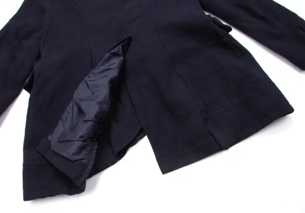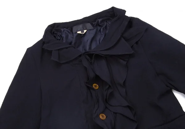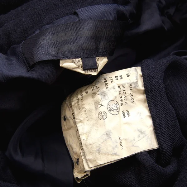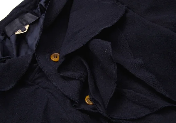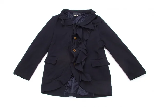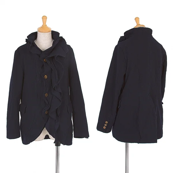 コムコム コムデギャルソンCOMME des GARCONSポリ製品染めピリング加工フリルラペルデザインジャケット 紺M
