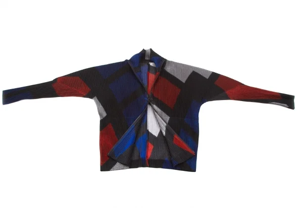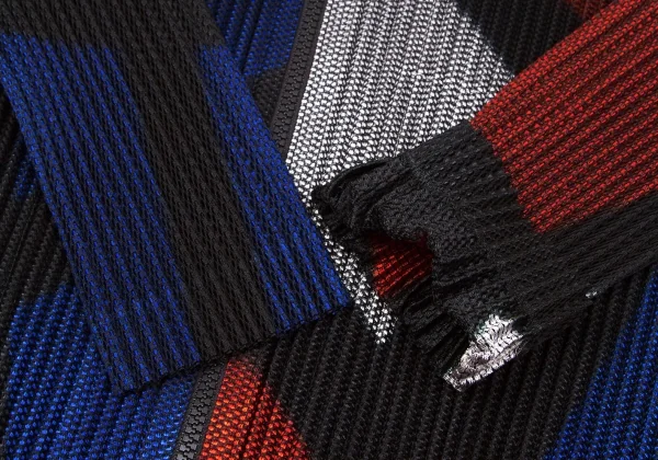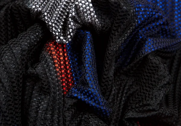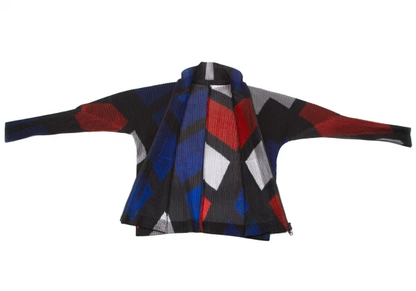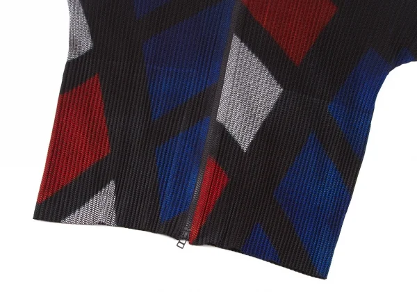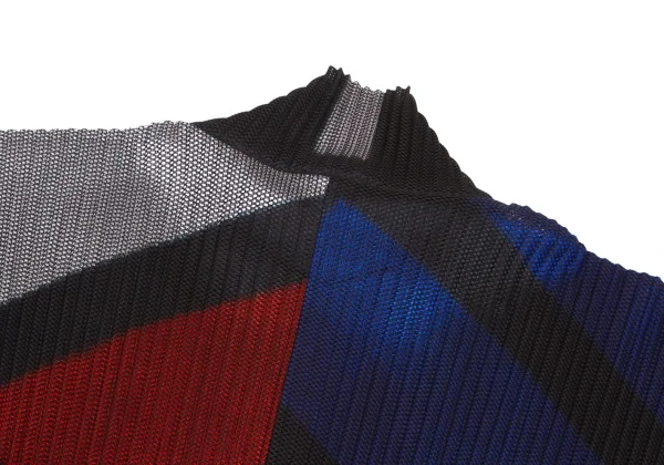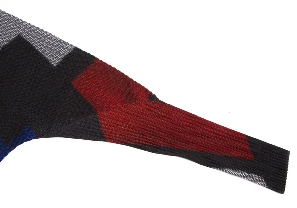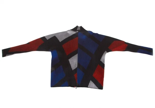 イッセイミヤケ メンISSEY MIYAKE MEN 幾何学柄プリーツメッシュブルゾン 黒青エンジシルバー2