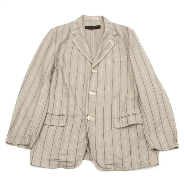コムデギャルソンオムCOMME des GARCONS HOMME ストライプシームデザインジャケット グレーベージュ黒生成り他M