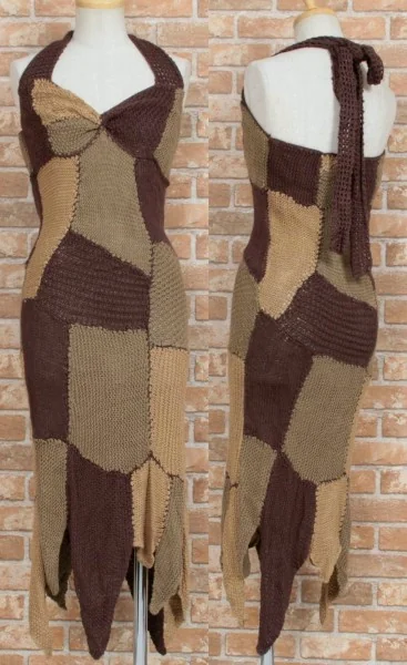 グレースコンチネンタル GRACE ホルターネックニットワンピース 茶カーキ36