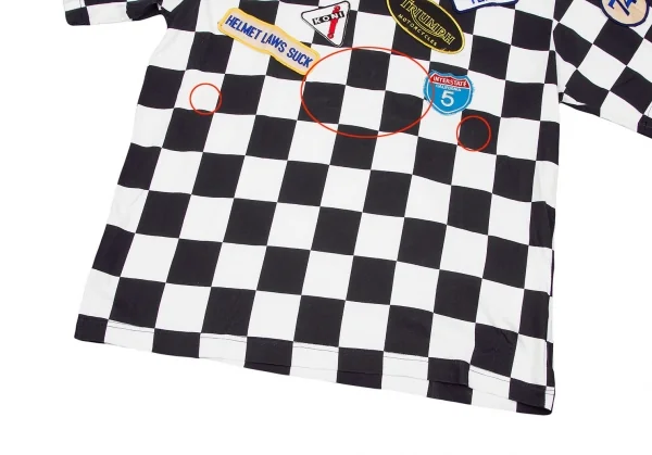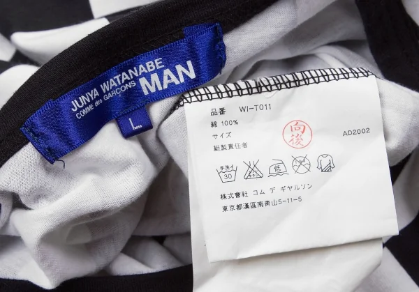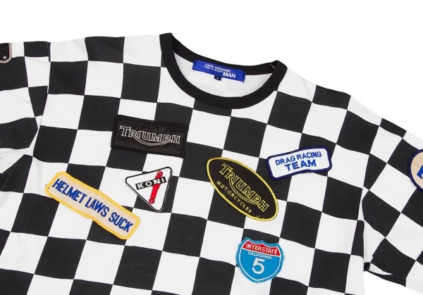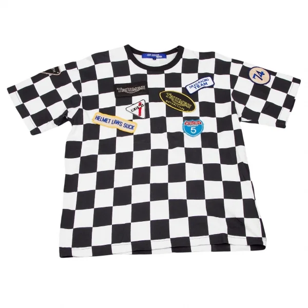ジュンヤワタナベマン コムデギャルソンJUNYA WATANABE MAN COMME des GARCONS ワッペンチェッカーフラッグTシャツ 黒白マルチL