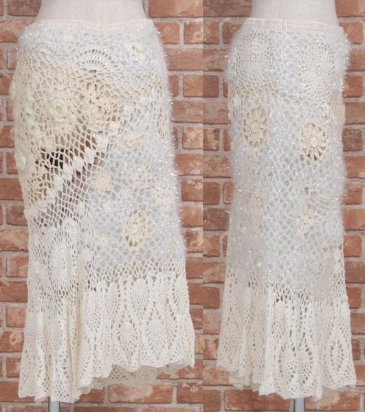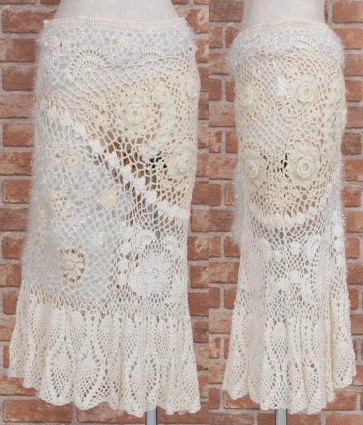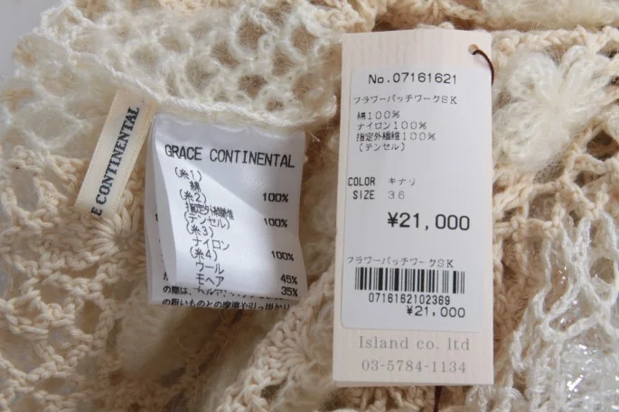 新品!グレースコンチネンタルGRACE CONTINENTAL フラワーパッチワークスカート 生成36