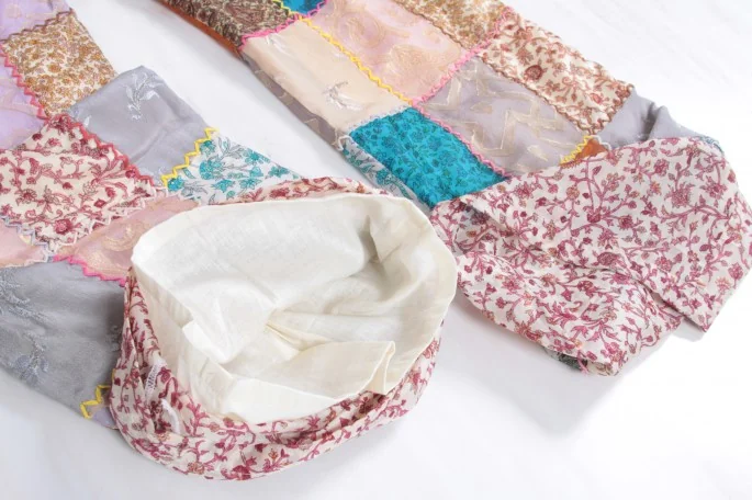 表地 ポリエステル100%、シルク100% 裏地 綿100%