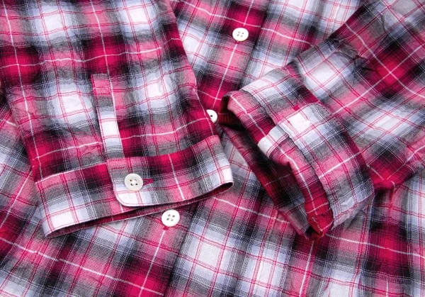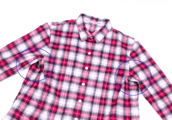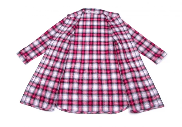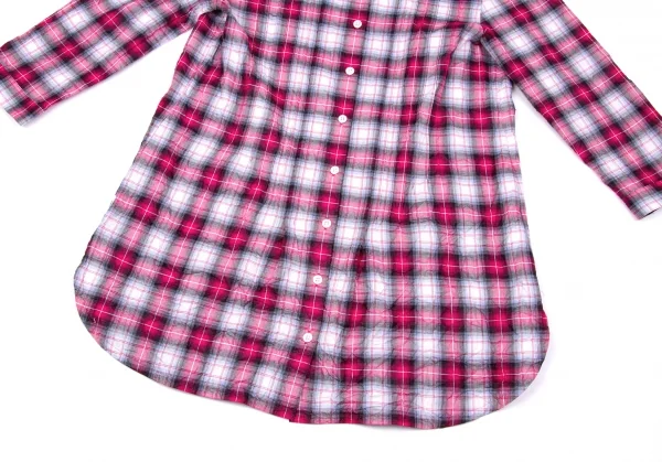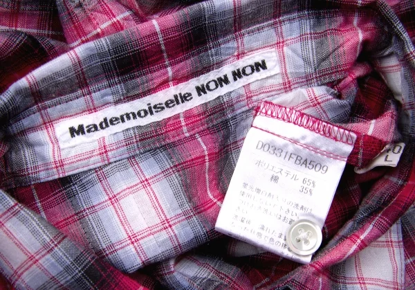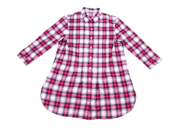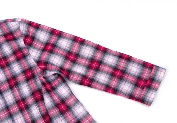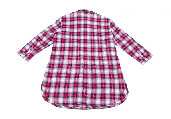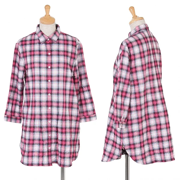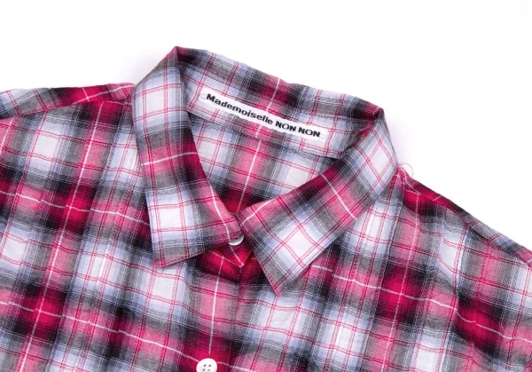 マドモアゼルノンノンMademoiselle NON NON シワ加工ピンタック七分袖チェックシャツ ピンクグレーオフ他38(M)