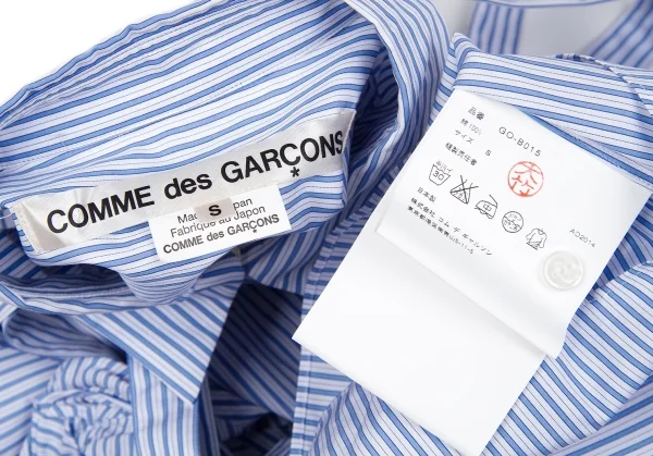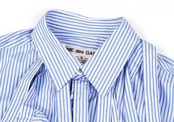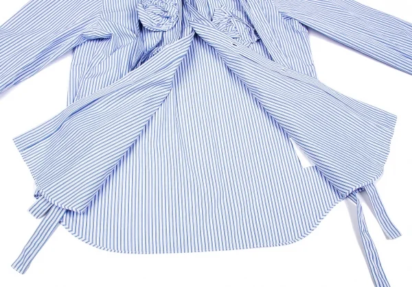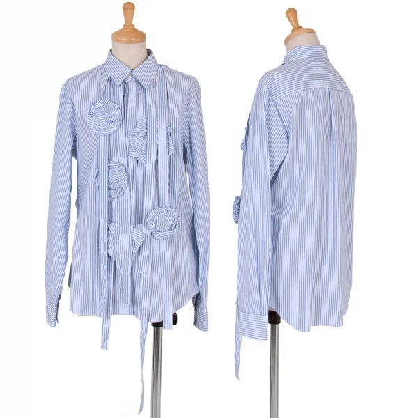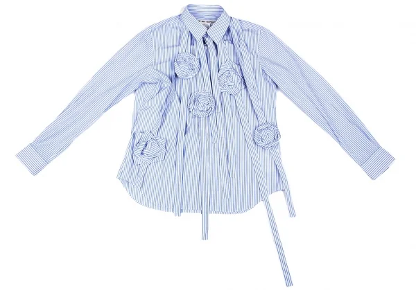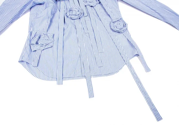 新品!コムデギャルソンCOMME des GARCONS フラワーコサージュストライプシャツ 白水色S