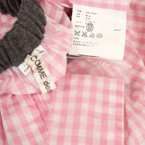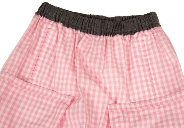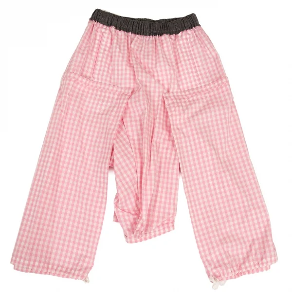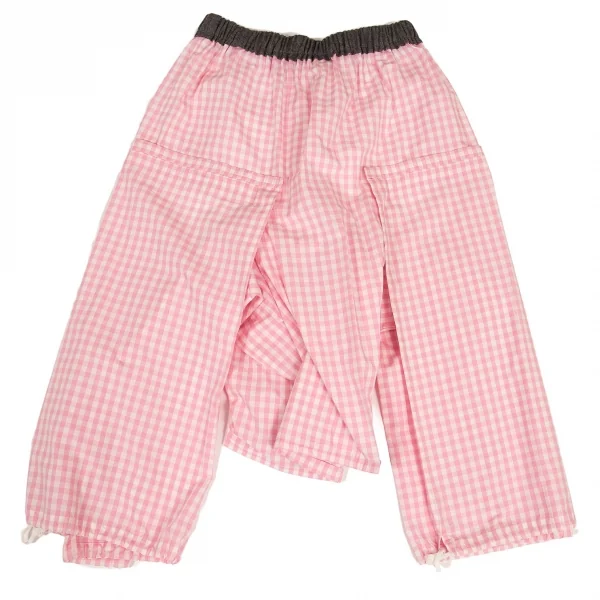 コムデギャルソンCOMME des GARCONS ギンガムチェック変形サルエルパンツ ピンク ピンク白チャコールS