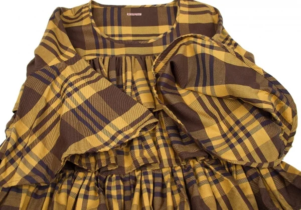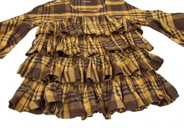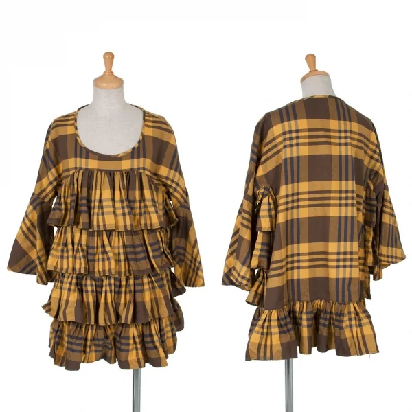 【最終値下げ】キャピタルKAPITAL チェックティアードデザイントップス カラシ茶紺XS