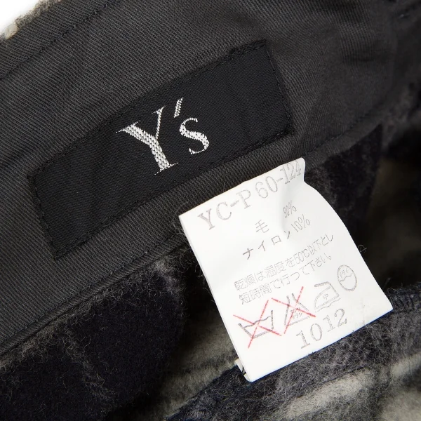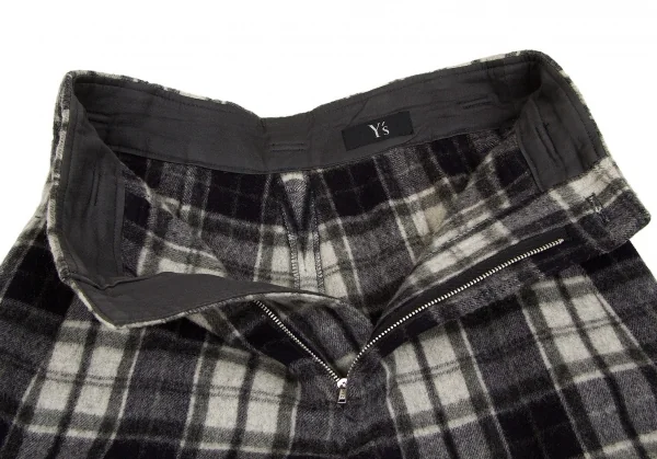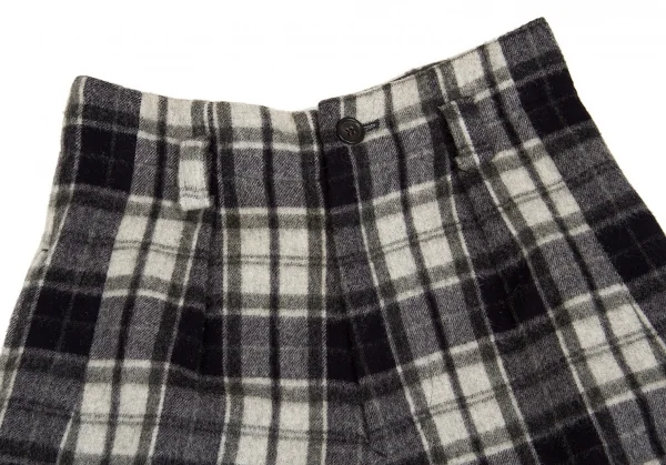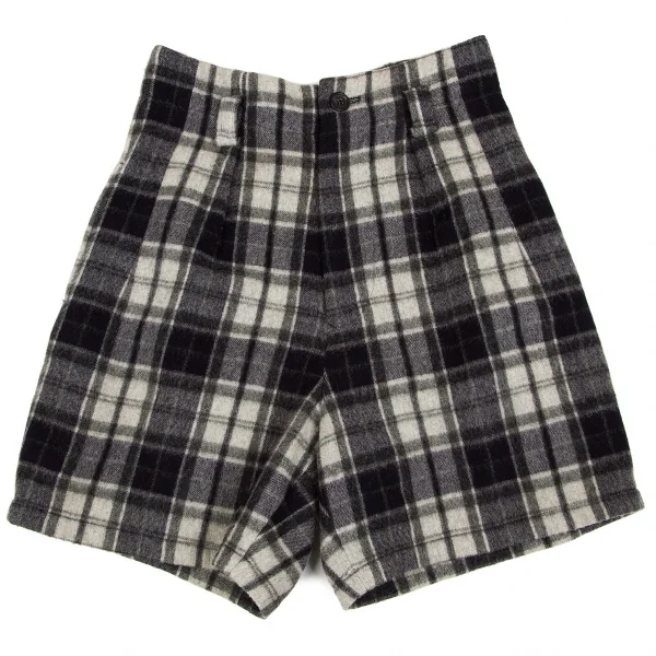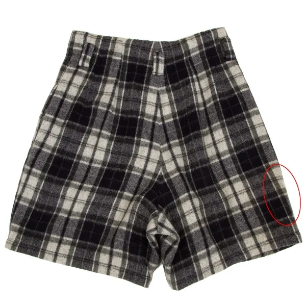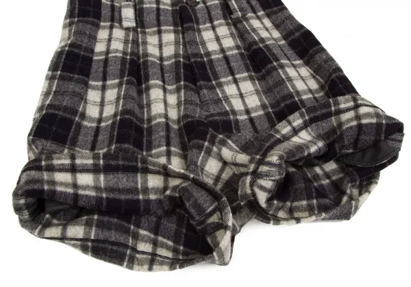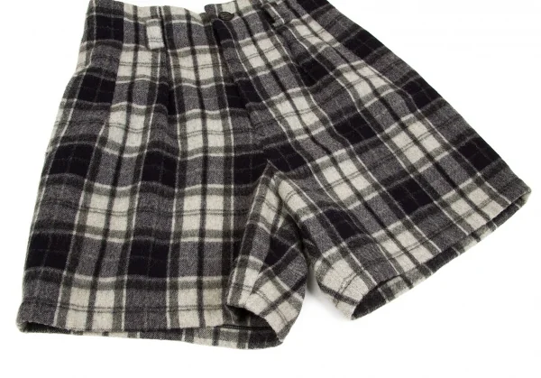 【SALE】ワイズY's ウールナイロン起毛チェックショートパンツ 紺グレーM位