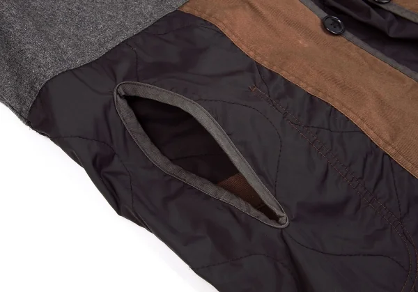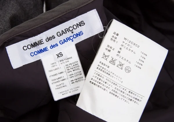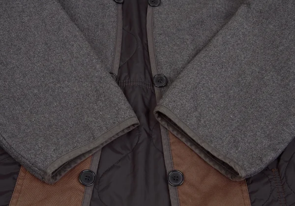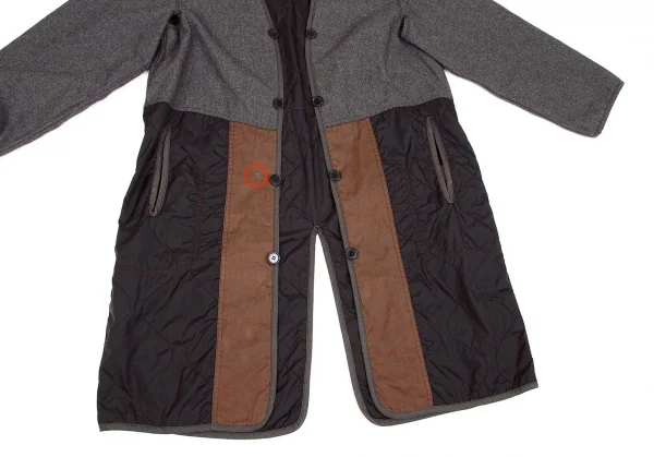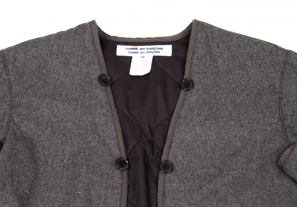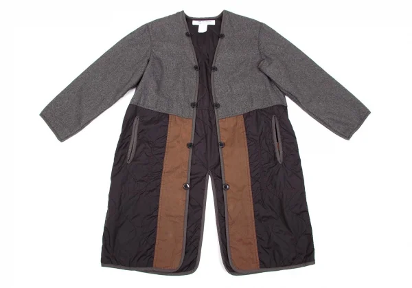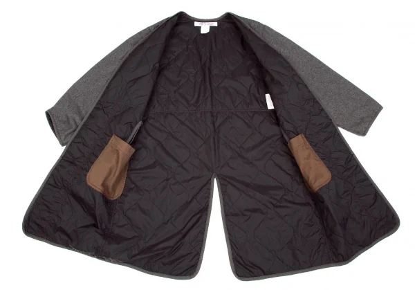 コムコム コムデギャルソンCOMME des GARCONS ノーカラーライナーコート 霜降りグレー黒茶XS