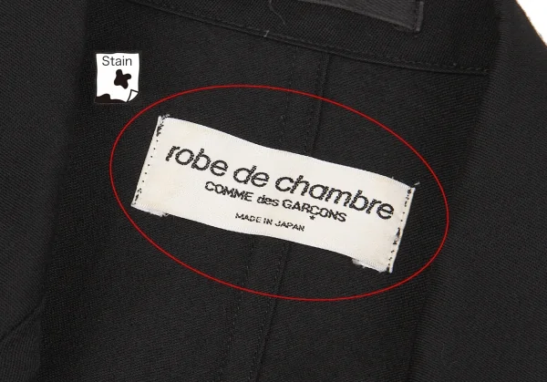【SALE】ローブドシャンブル コムデギャルソンrobe de chambre COMME des GARCONS セミピークドラペルウールジャケット 黒M位