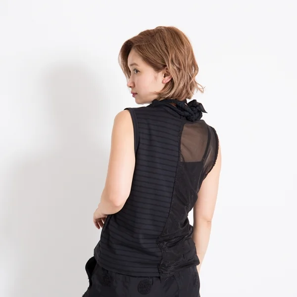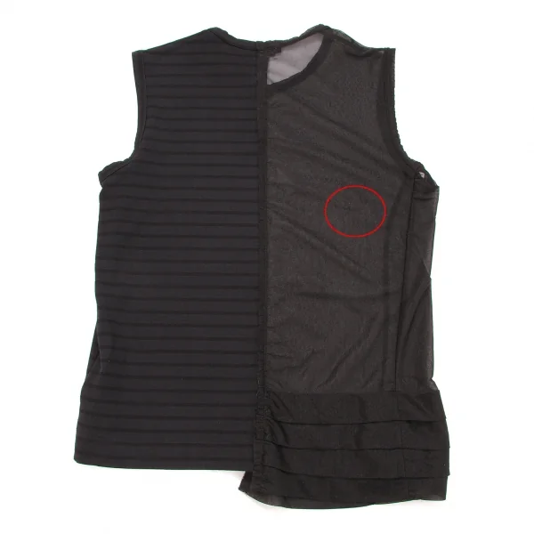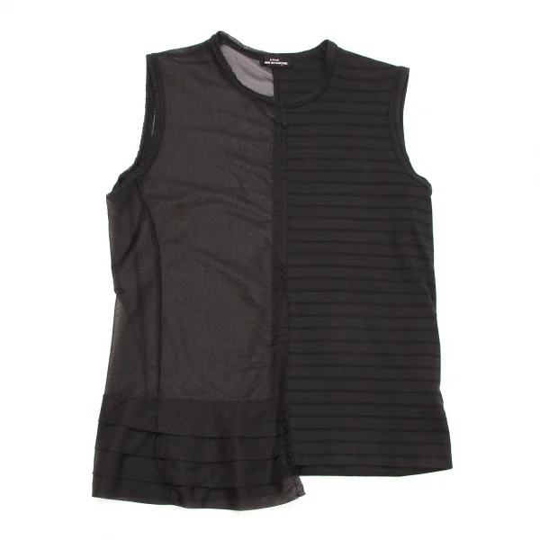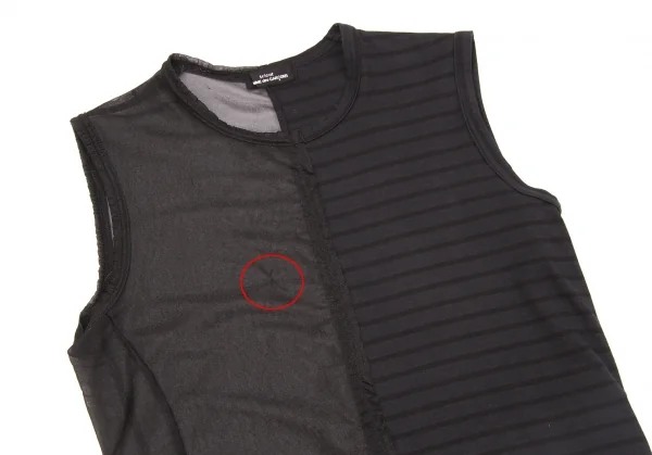 【SALE】トリココムデギャルソンtricot COMME des GARCONS 製品染めシースルー切替ボーダーノースリーブ 黒チャコールM位