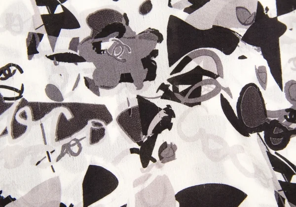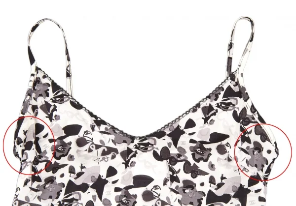 シャネルCHANEL プリントキャミソール オフグレー黒36