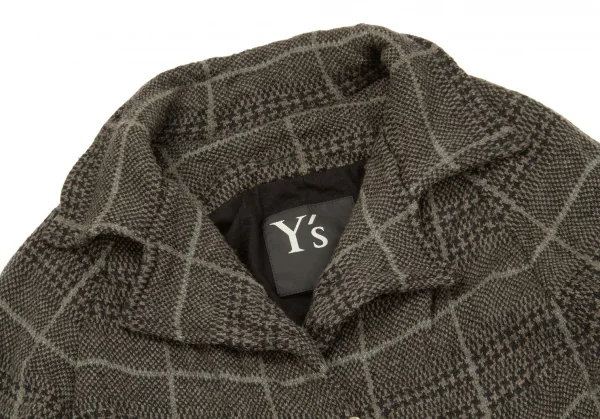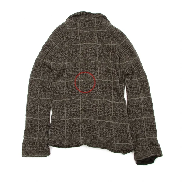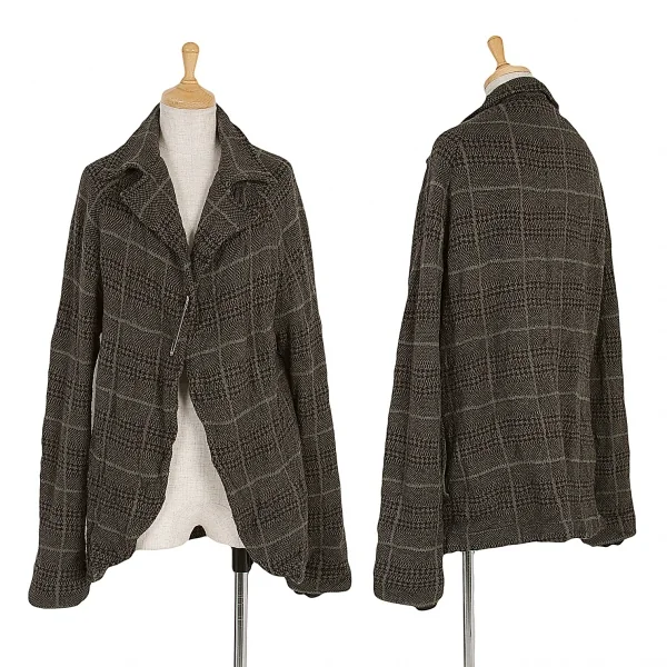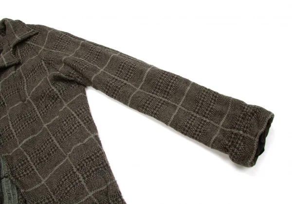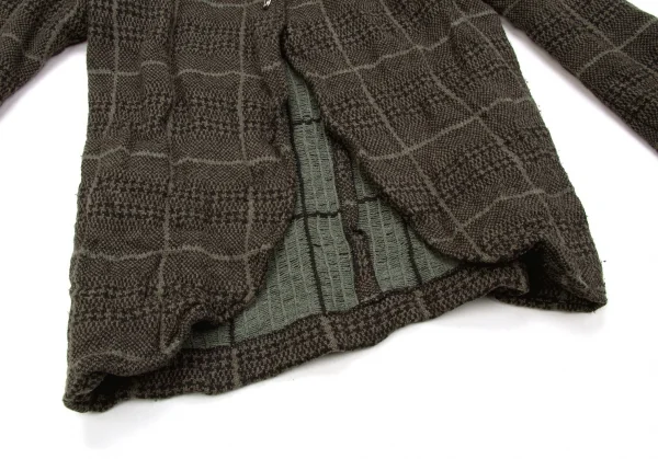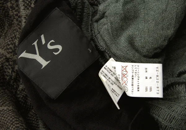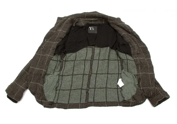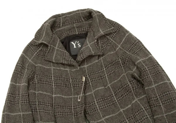 【SALE】ワイズY's グレンチェックウールニットピン留めジャケット 茶グレーモスグリーン3
