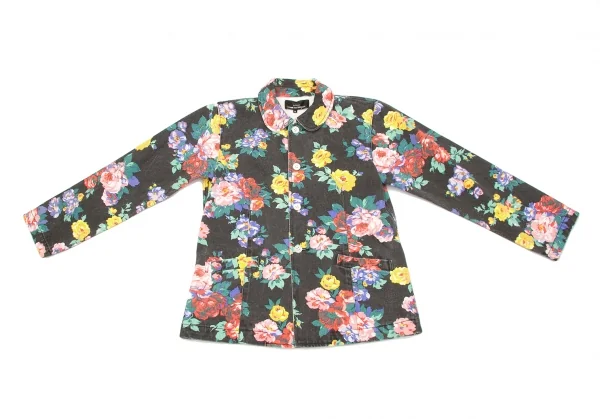 トリココムデギャルソンtricot COMME des GARCONSラウンドカラーフラワープリントジャケット 墨黒マルチM