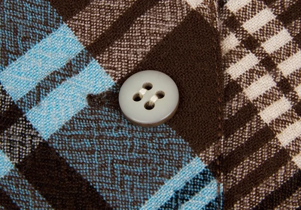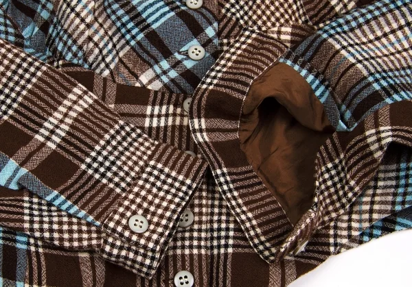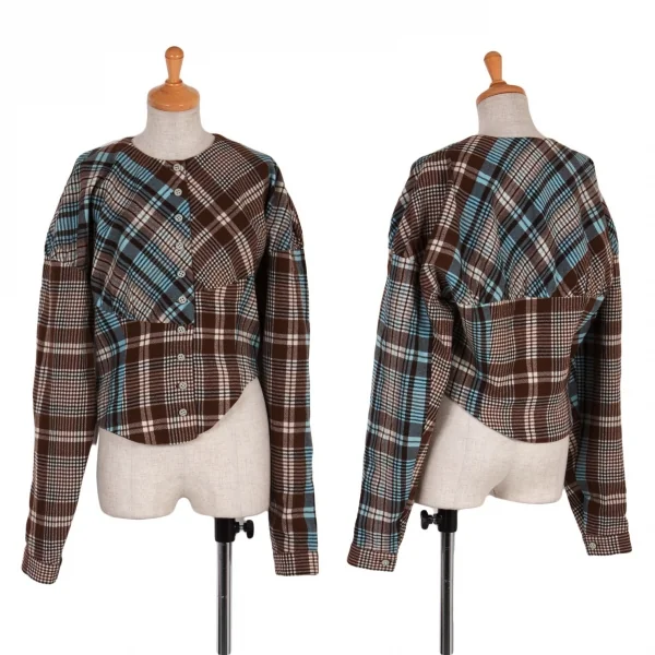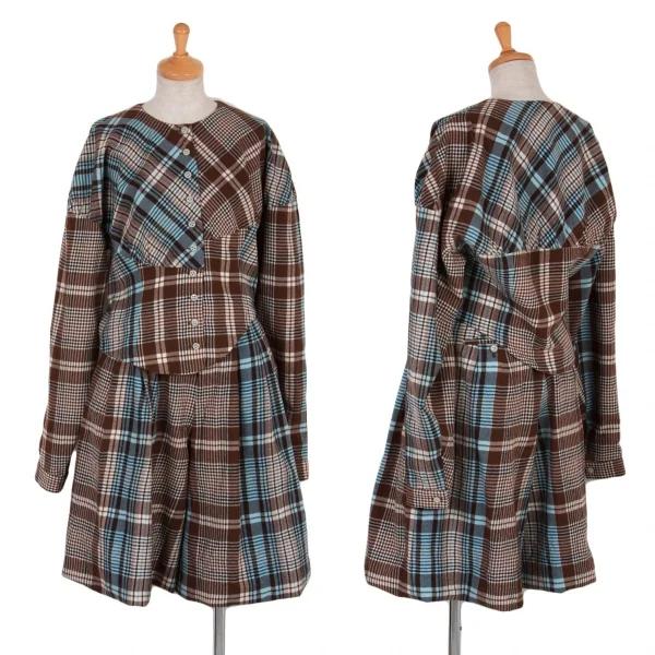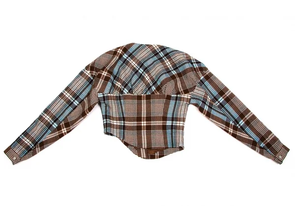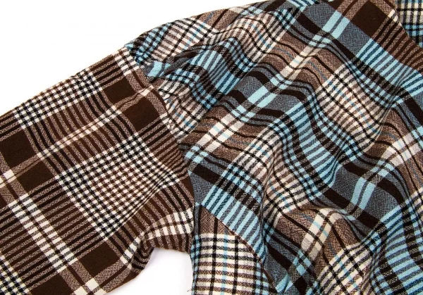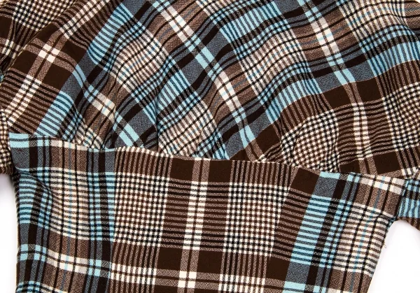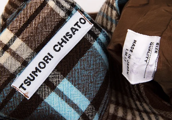 ツモリチサトTSUMORI CHISATO ウールチェック変形切替ジャケット 茶オフブルーM位