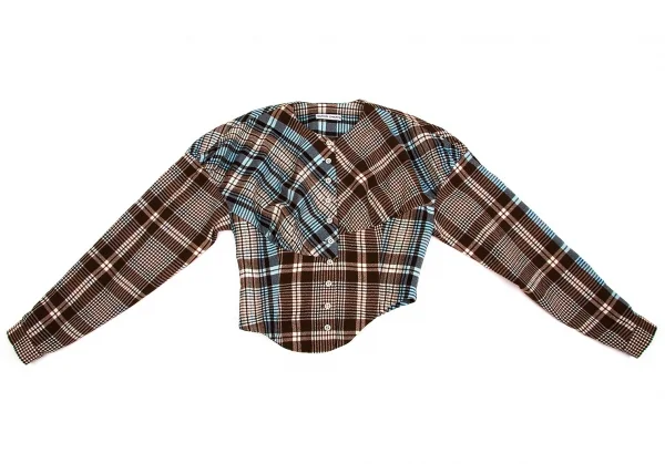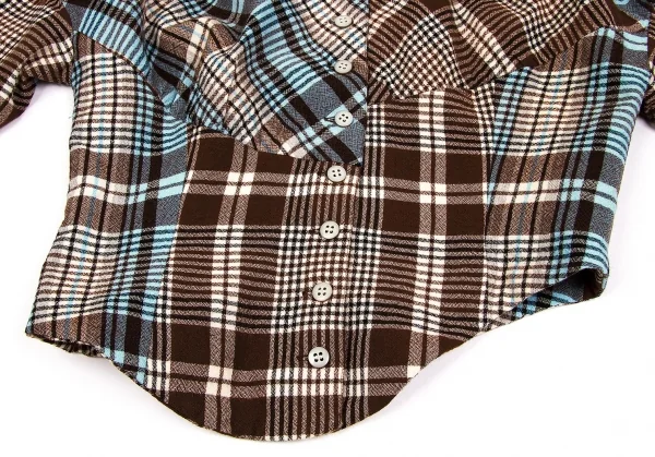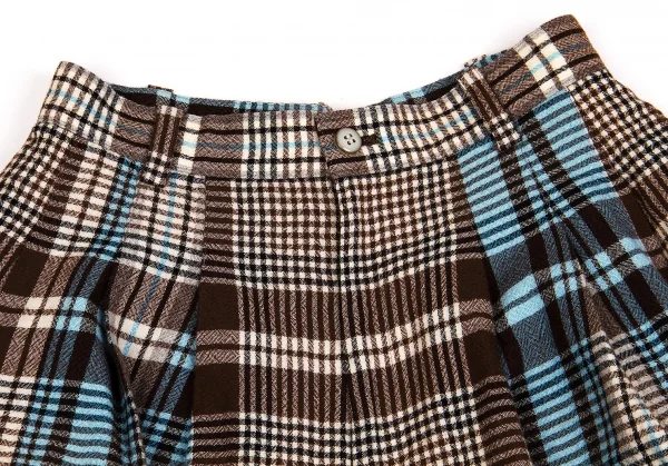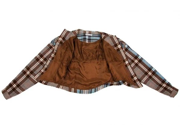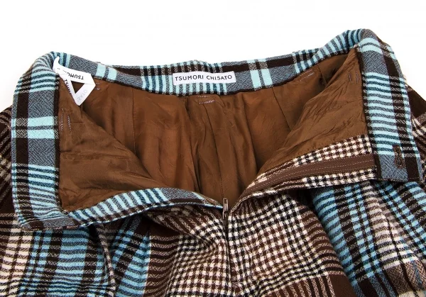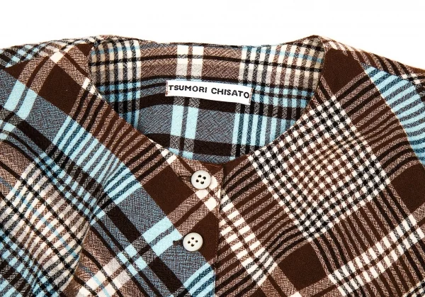 ツモリチサトTSUMORI CHISATO ウールチェック変形切替セットアップ 茶オフブルーM位/M