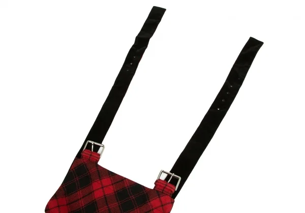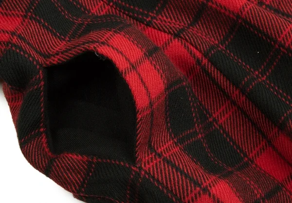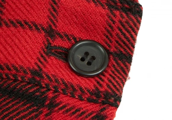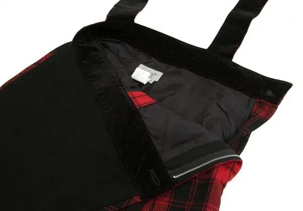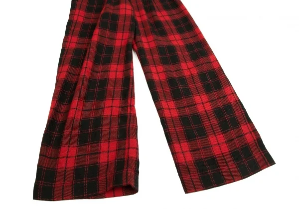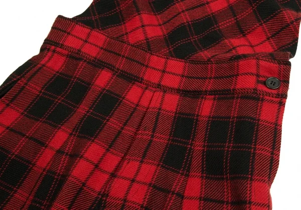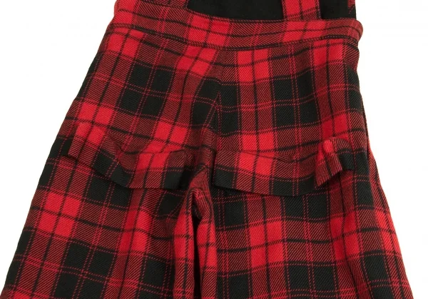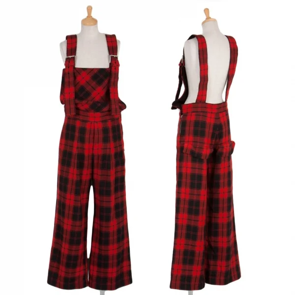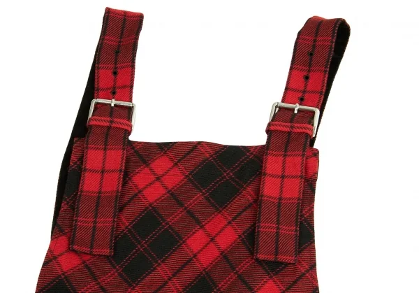 ヨウジヤマモトファムYohji Yamamoto FEMME ウールバッファローチェックサロペット 赤黒1