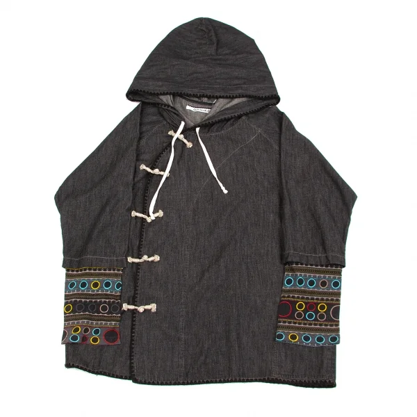 ゴムオムGOMME HOMME チャイナボタンデニムパーカー 黒マルチM位