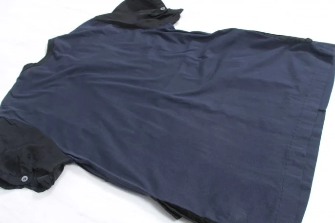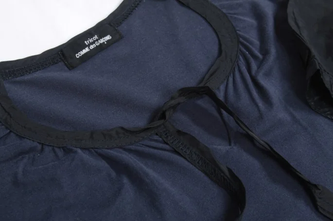 トリコ コムデギャルソン tricot キュプラ切替製品染めカットソーM~L 紺表示なし M~L