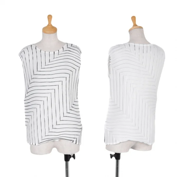 イッセイミヤケミーISSEY MIYAKE me プリントプリーツノースリーブ 白黒S位
