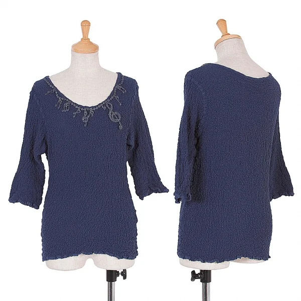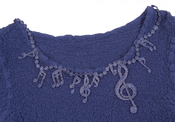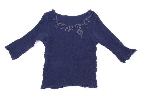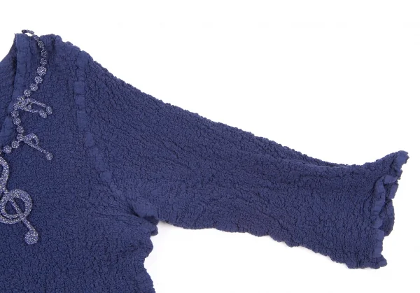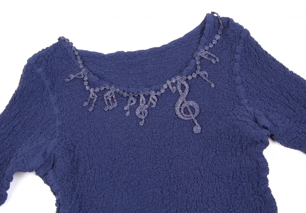 【SALE】イッセイミヤケミーISSEY MIYAKE me 音符装飾カリフラワーカットソー 紺ゴールドS位