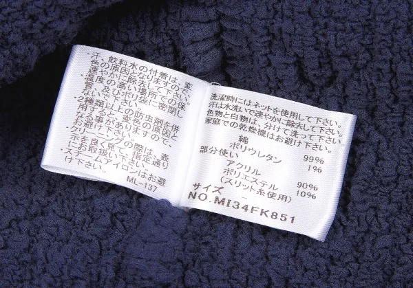 綿99% ポリウレタン1% 部分使い アクリル90% ポリエステル10%(スリット糸使用)
