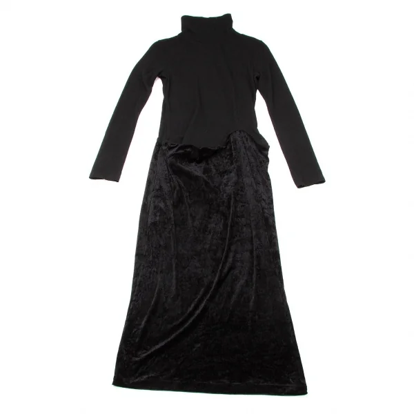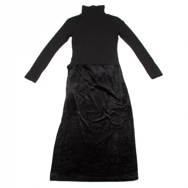 ワイズY's ベロア切替ハイネックワンピース 黒M位