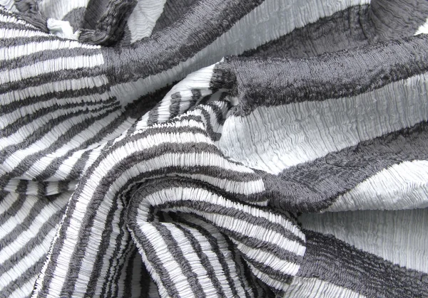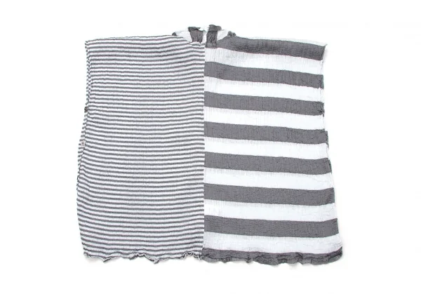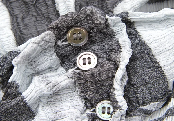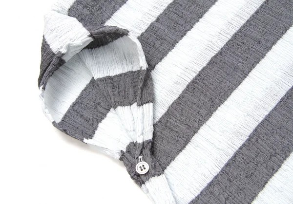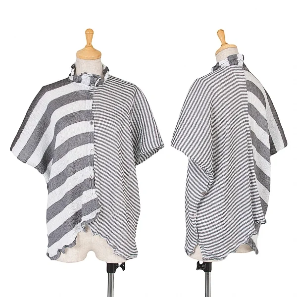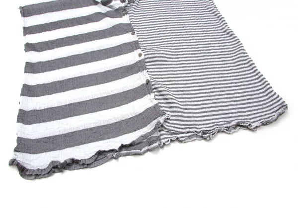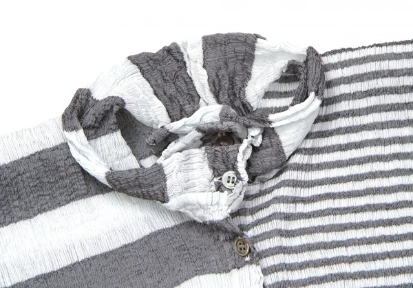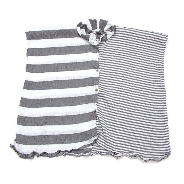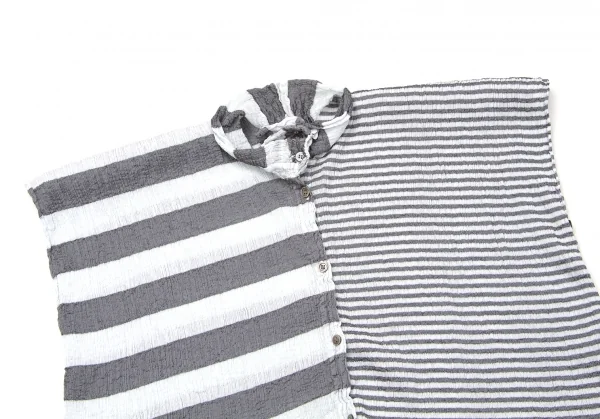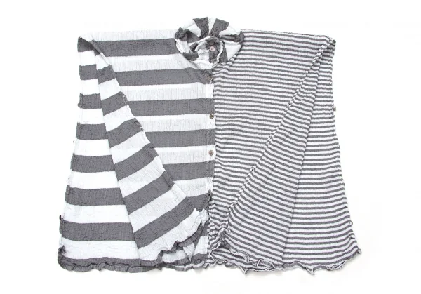 イッセイミヤケミーISSEY MIYAKE me ボーダー切替ボックスシルエットシャツ グレー濃淡M位