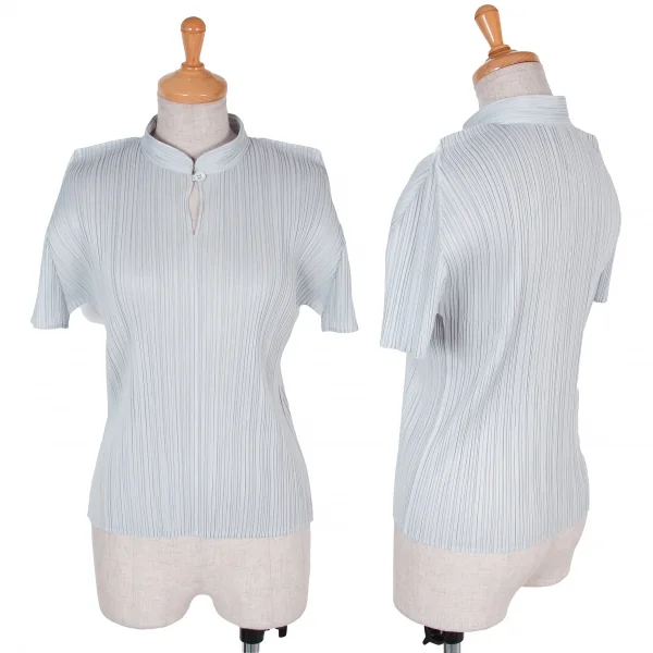 プリーツプリーズPLEATS PLEASE プリーツスタンドカラートップス 薄グレー3