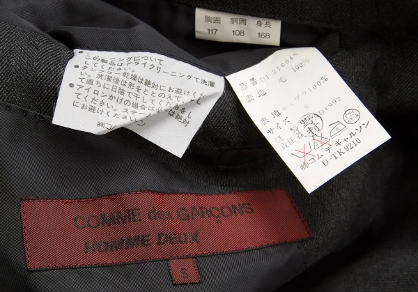 【SALE】コムデギャルソンオムドゥCOMME des GARCONS HOMME DEUX ウールヘリンボーンジャケット グレーS