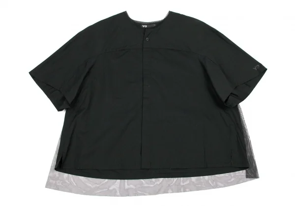 ワイスリーY-3 メッシュレイヤード変形デザイン半袖シャツ 黒S/P