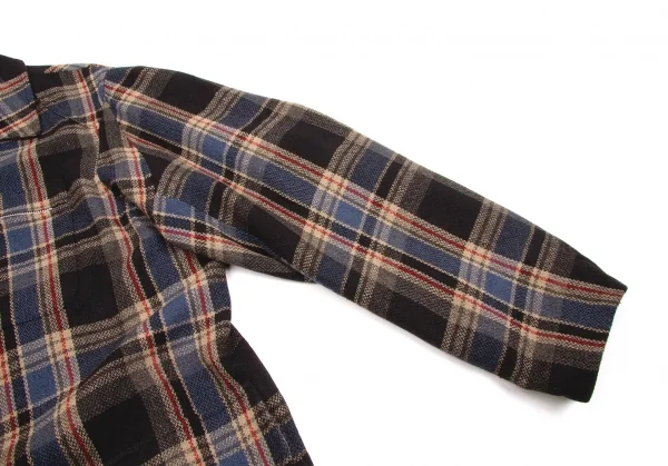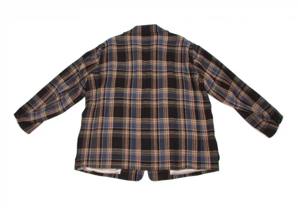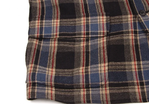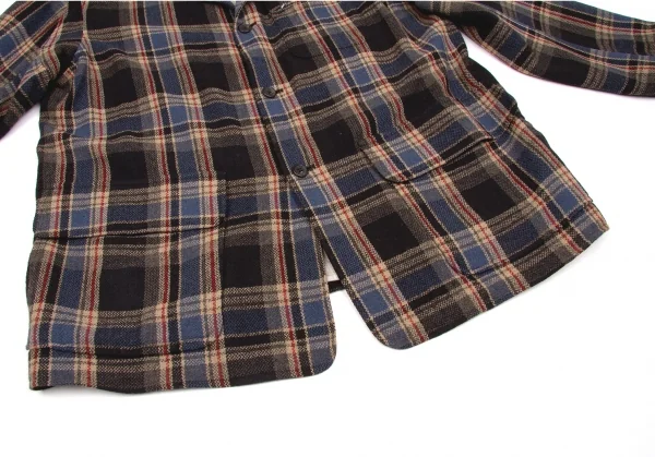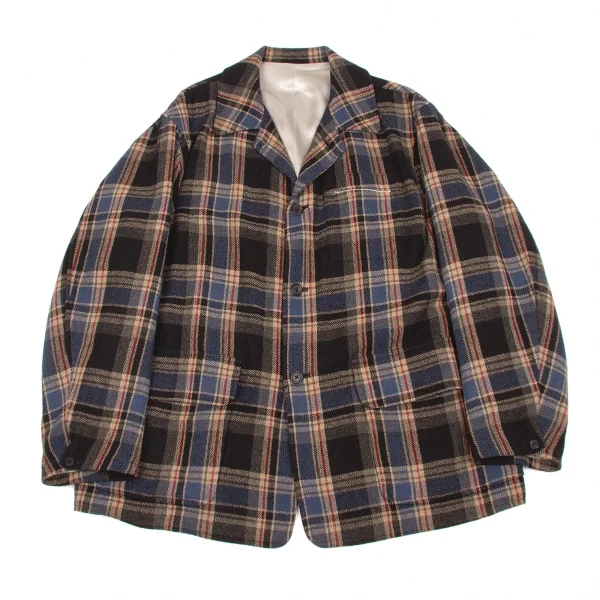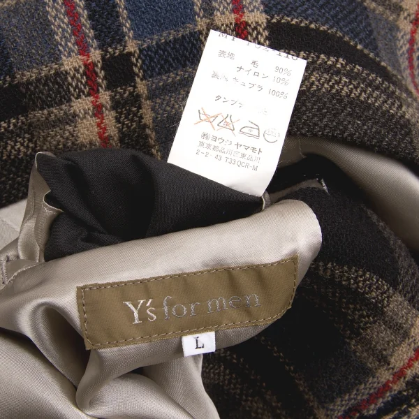 ワイズフォーメンY's for men ウールナイロンチェックジャケット 紺エンジベージュ他L