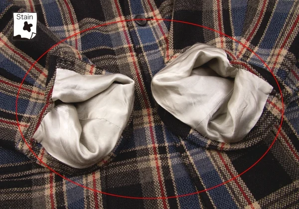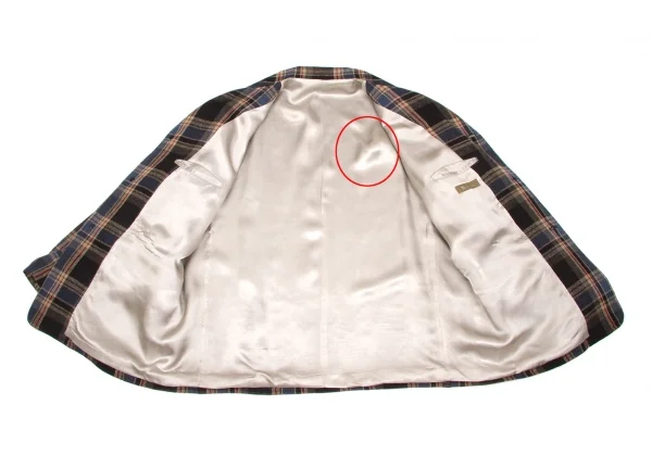 袖裏薄汚れ、裏地薄シミがあります(写真参照)。その他に目立ったシミ、汚れ、ほつれ等なくいい状態です。クリーニング済み