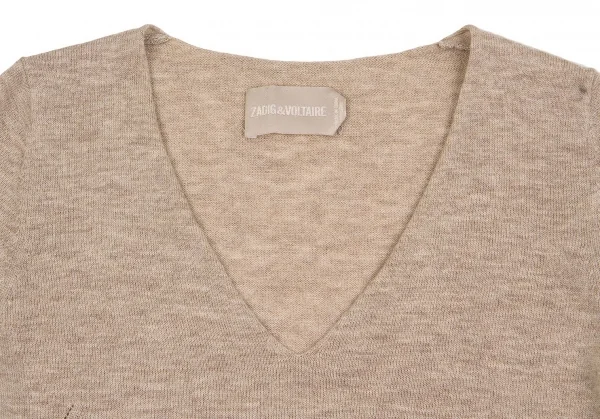 ザディグ エ ヴォルテールZADIG VOLTAIRE カシミヤ混ウールスパンコールエルボーニット 杢ベージュXS