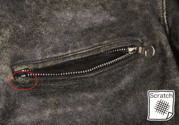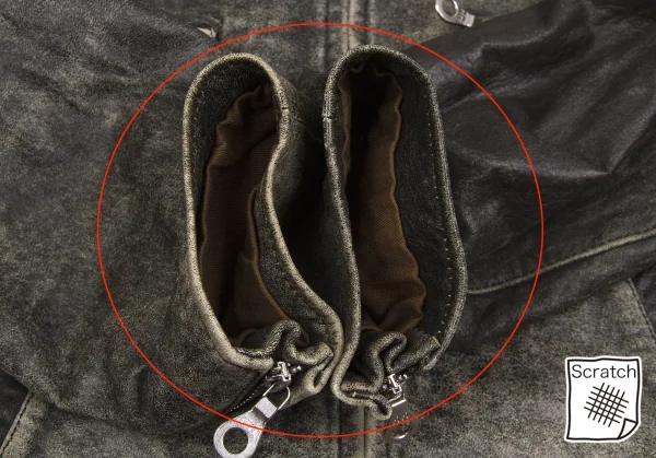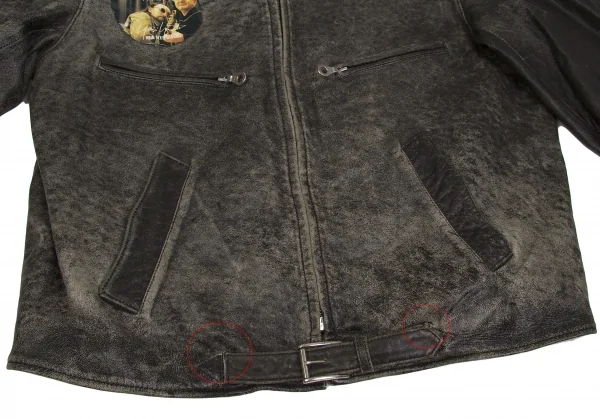 胸はプリントではなくステッカーが貼ってあります。ポケット口ダメージ、袖口スレ、ベルト付け根裂けがあります(写真参照)。その他に目立ったシミ、汚れ、ほつれ等なくいい状態です。クリーニング済み