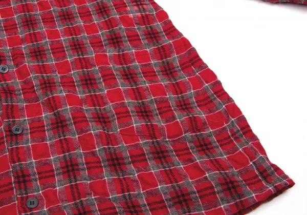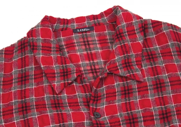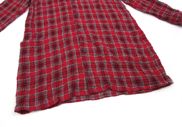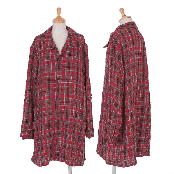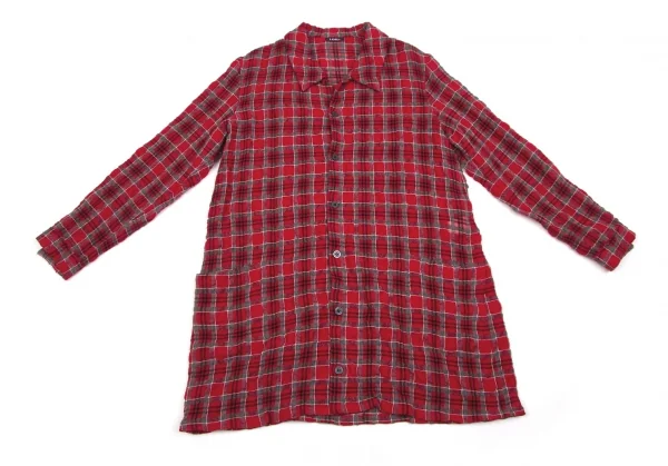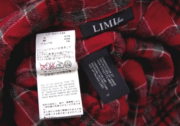 【最終値下げ】リミフゥLIMI feu アルパカ混ウールコットンロングシャツ 赤黒チャコールM位