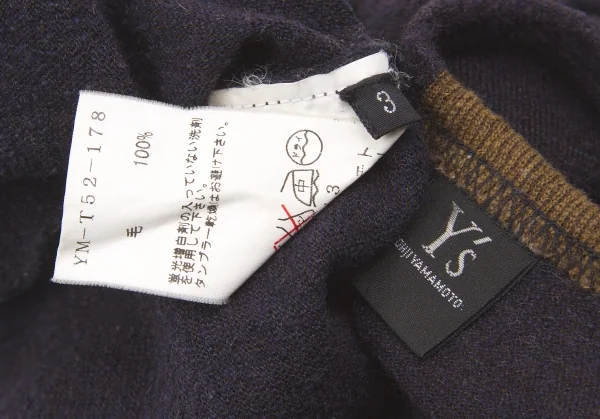 【最終値下げ】ワイズ Y's ネックポイントウールカットソー 杢紺3