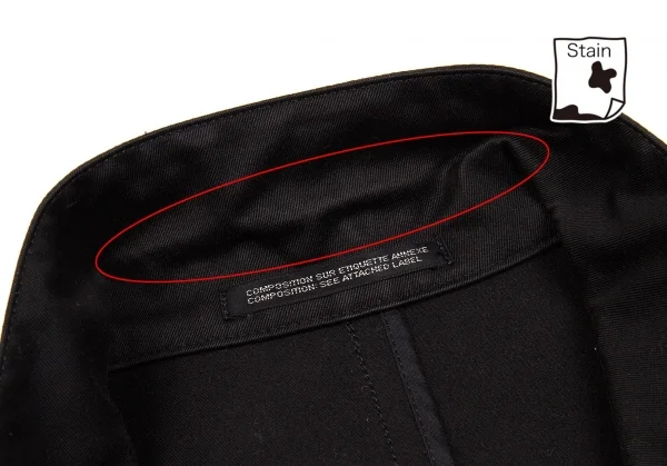 襟元、袖裏に汚れがあります(写真参照)その他目立ったシミ、汚れ、ほつれ等はないです。クリーニング済み