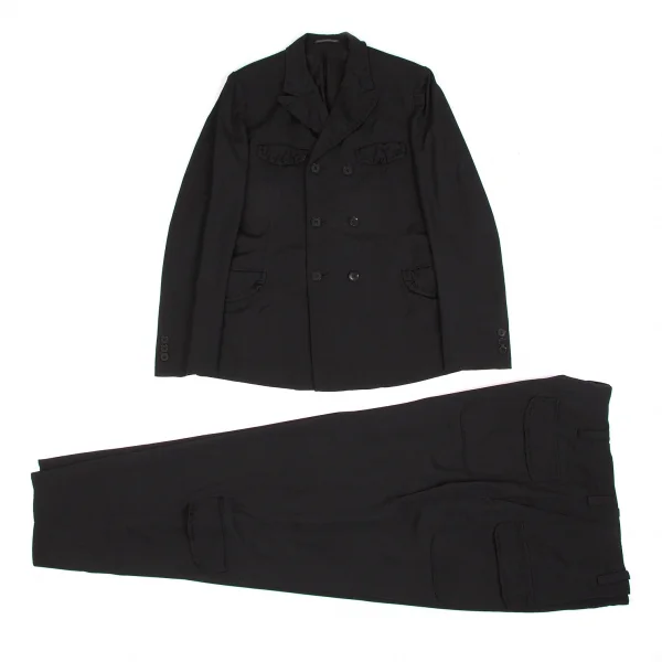 ヨウジヤマモトプールオムYohji Yamamoto POUR HOMME ウールギャバハンドステッチデザインセットアップスーツ 黒赤紫他4