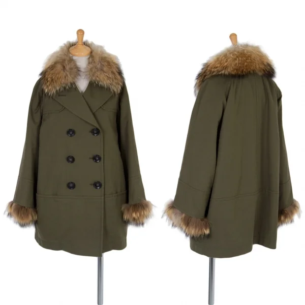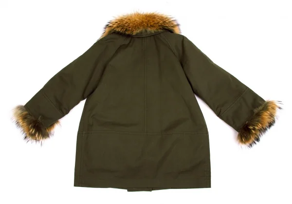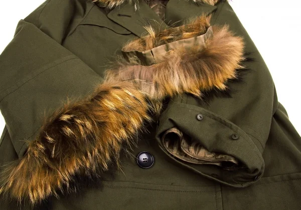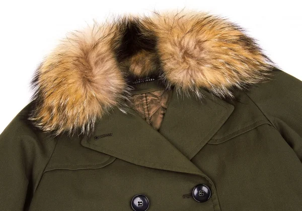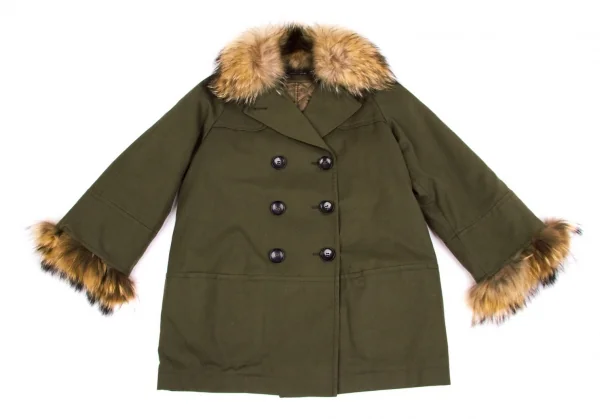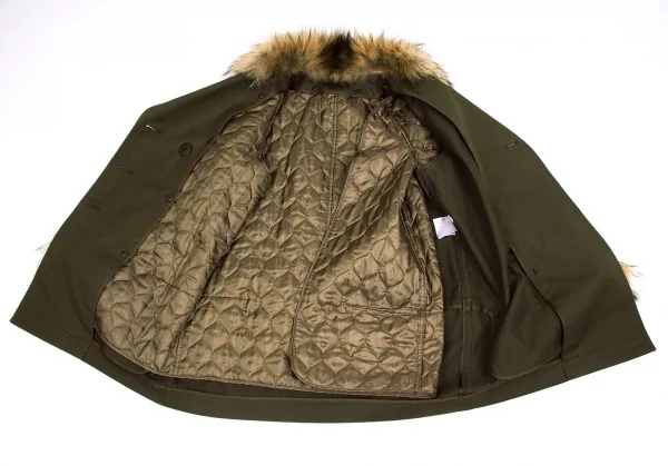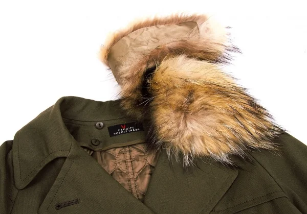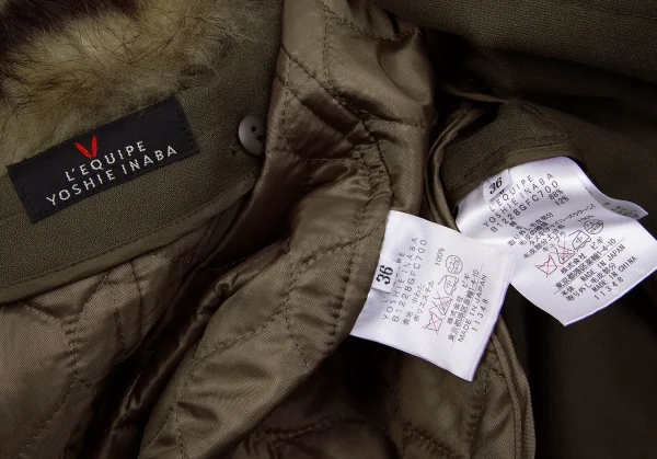 レキップ ヨシエイナバL'EQUIPE YOSHIE INABA ラクーンファー襟ライナー付きコート カーキベージュ36