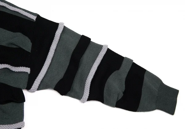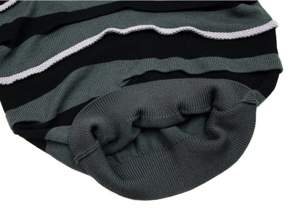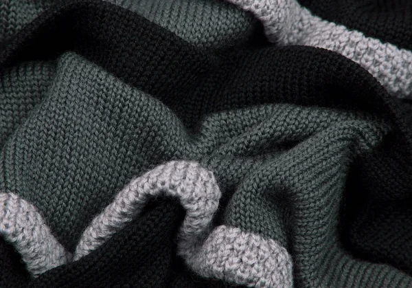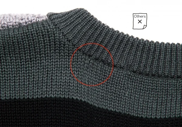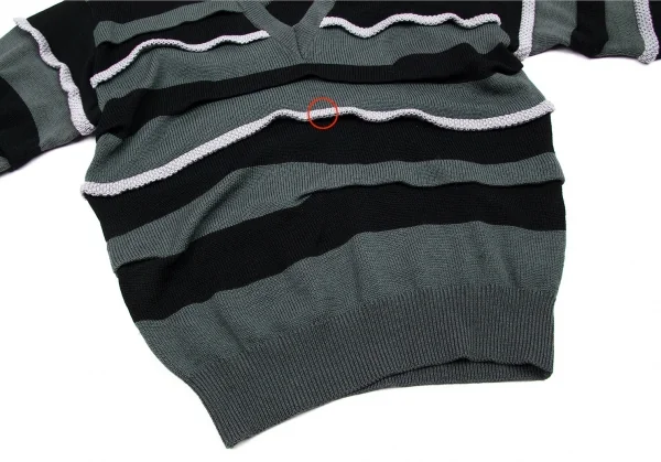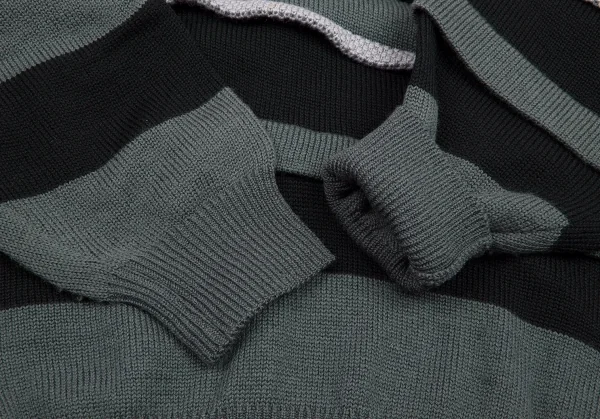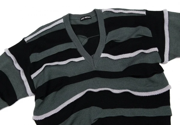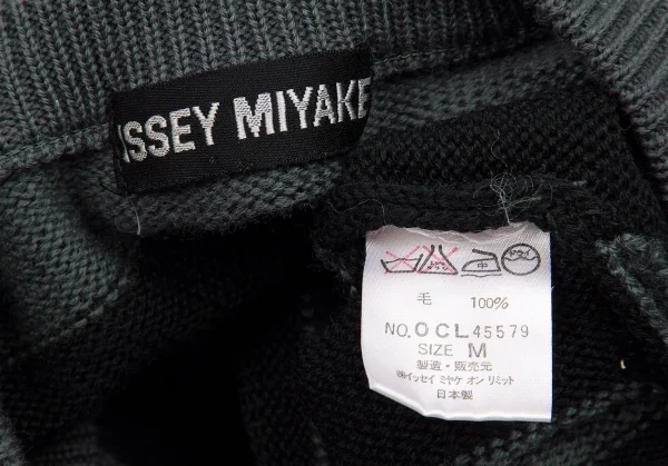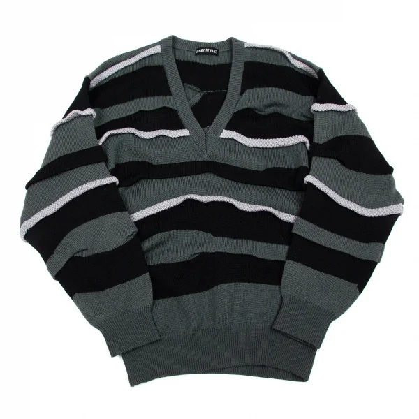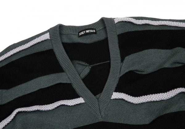 イッセイミヤケISSEY MIYAKEVネックウールドロップショルダーニット ブルーグレー黒グレーM