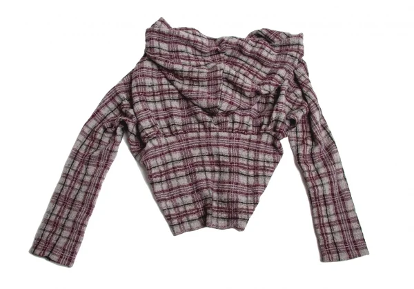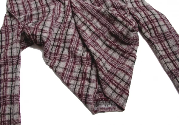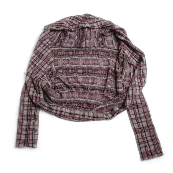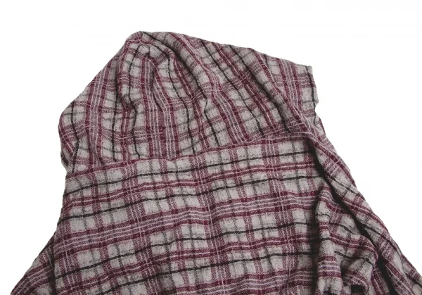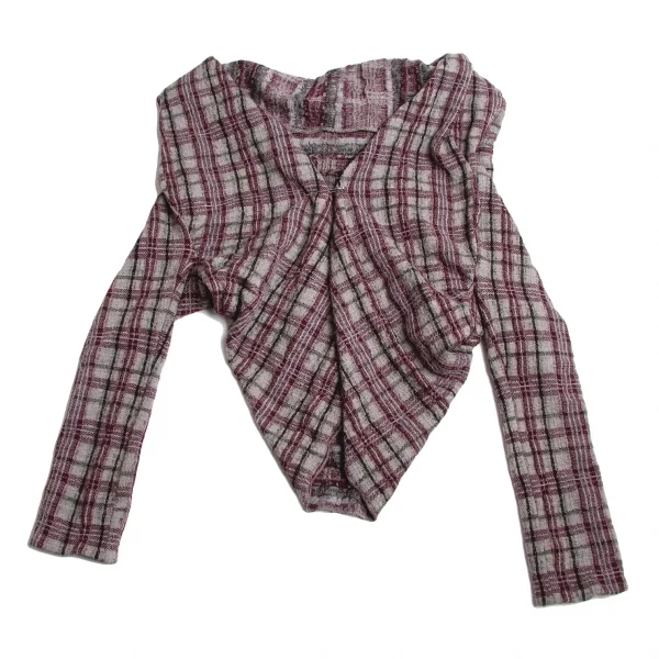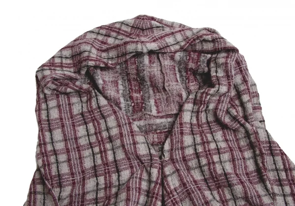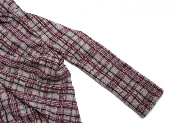 ワイズY's ピン留めウールチェックフードボレロ グレーエンジ2