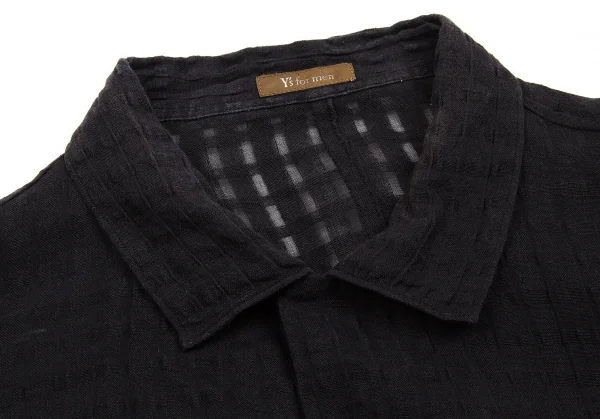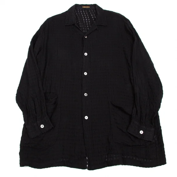 ワイズフォーメンY's for men リネンコットンシースルーチェック織りシャツジャケット 黒M位