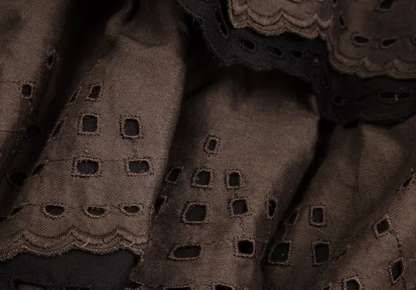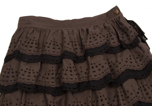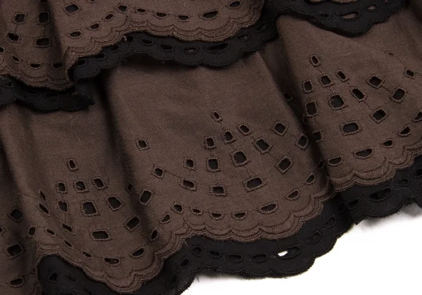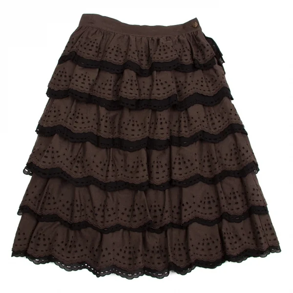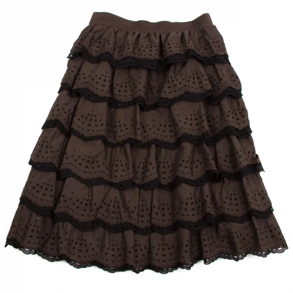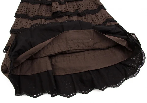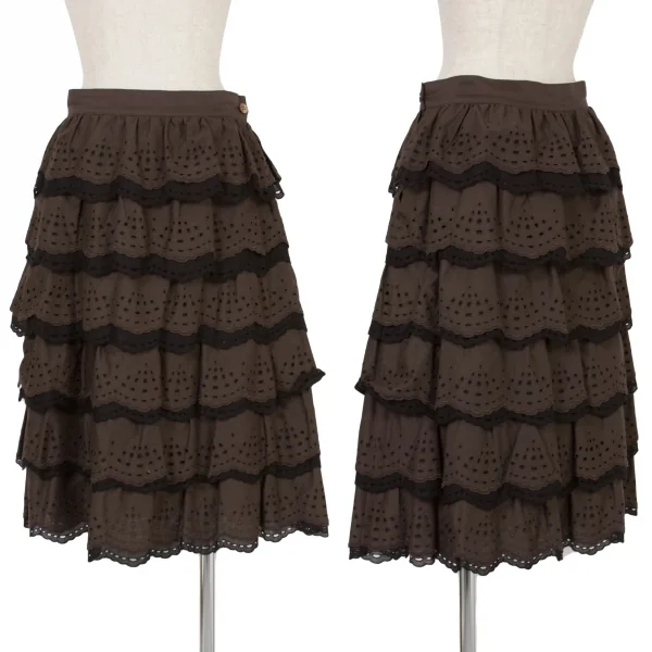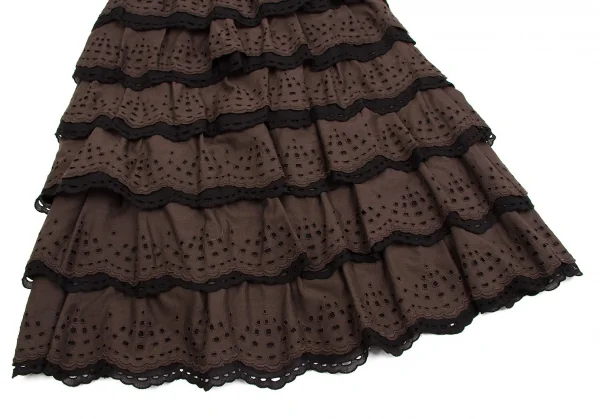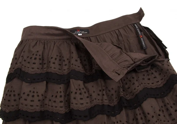 【SALE】レキップ ヨシエイナバL'EQUIPE YOSHIE INABA エンブロイダリーレースティアードスカート 茶黒38